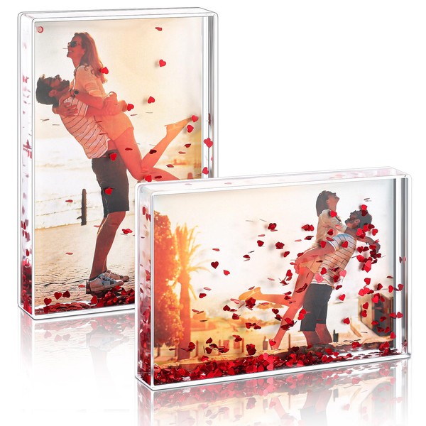 CroBlissful 2 Pcs Glitter Picture Frame 4 x 6 Inch Glitter Square Liquid Photo Frame Acrylic Snow Globe Photo Frame Floating Sparkle Water Customized Photo Christmas Valentine's Day Gifts for Couples