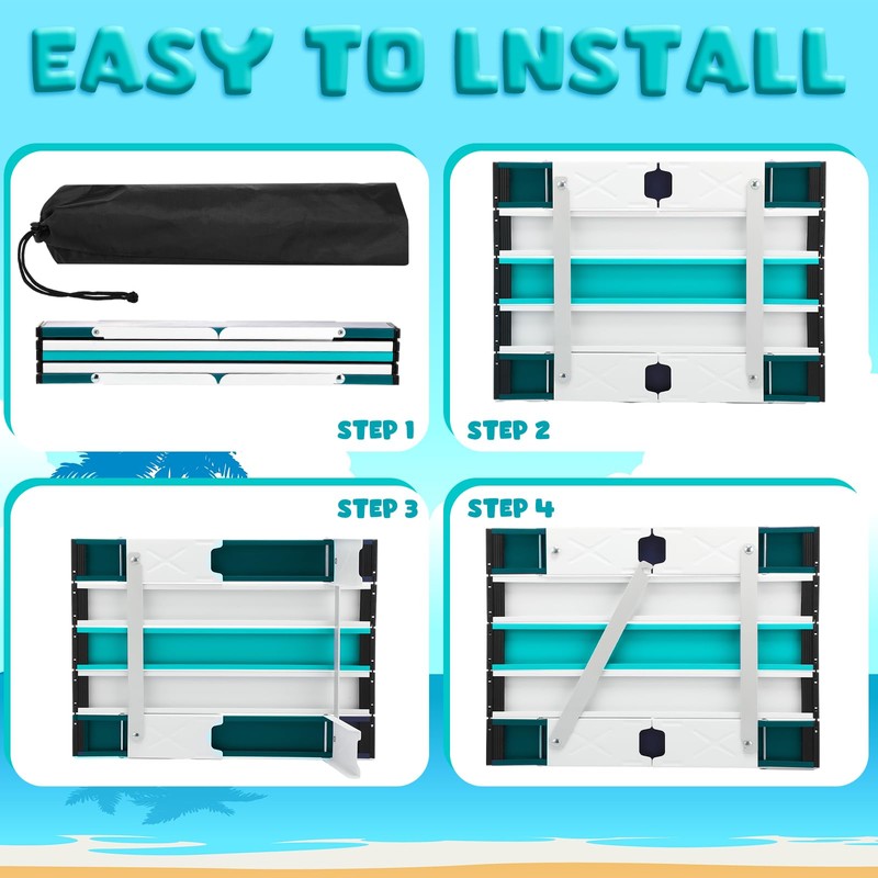 - Cyan Green Aesthetic: stand out on the sand or in the woods with our exclusive Cyan Green design; This stylish table not only serves its functional purpose but also adds a touch of elegance to your outdoor gatherings