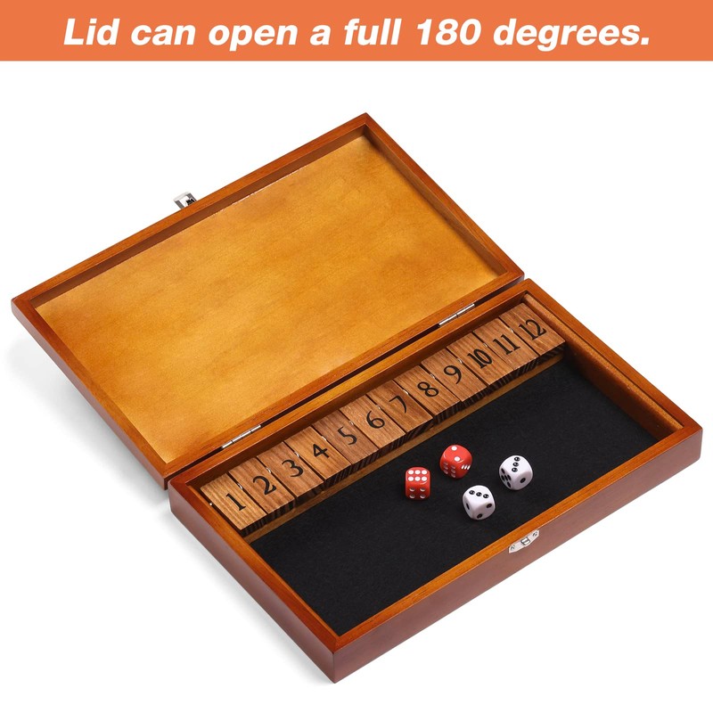 - 【A TRUE “SHUT THE BOX” GAME】Because this game contains a box with a lid, when you win, you can literally close the box! Shut The Box games without lids don’t make sense… How can you shut the box?! In addition, our lid can open a full 180 degrees, so it won't block your view during the game.