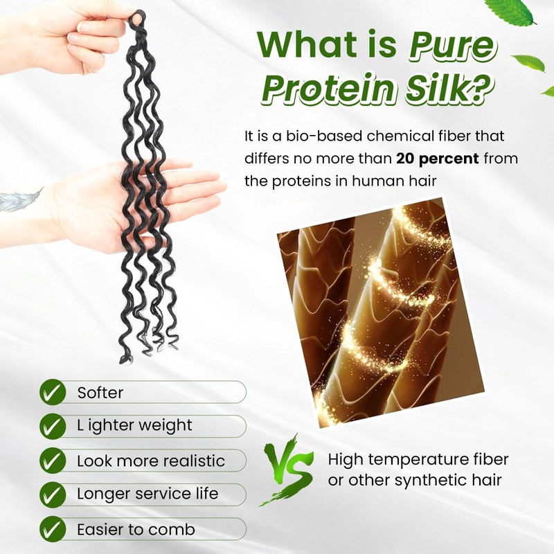 - Ultra-Soft, Smooth Texture Crochet Hair: The protein silk fibers are softer than synthetic hair, offering a silky, smooth texture that feels natural to the touch, providing an enhanced experience without the coarse feel of traditional synthetic fibers. a budget-friendly alternative that mimics the softness, bounce, and natural look of human hair.