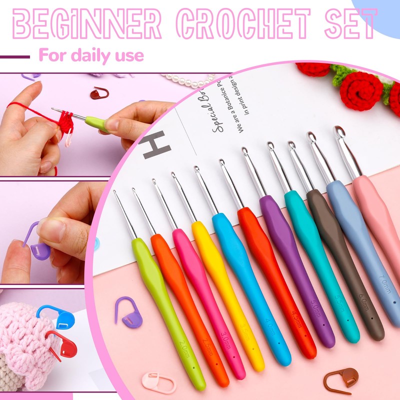 - Ergonomic crochet hooks: Each crochet hook is equipped with a soft silicone grip, which effectively relieves hand pressure and avoids cramps. The extended metal crochet hook is deeply embedded in the handle to prevent it from falling off and improve knitting efficiency.