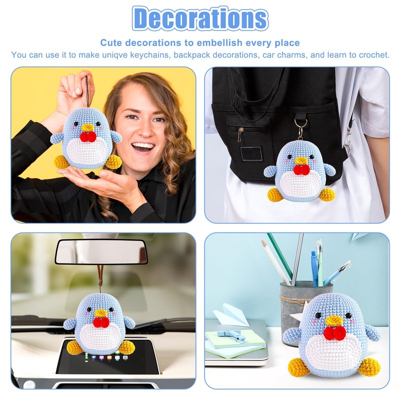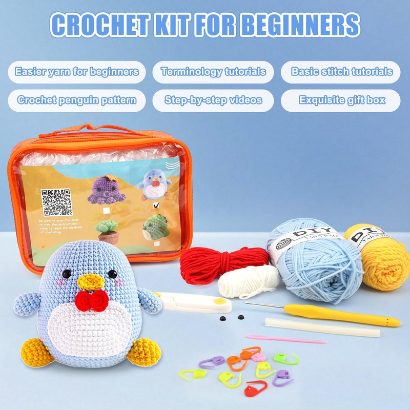 Crochet Kit for Beginner,Crochet Starter Kit with Step-by-Step Video Tutorials,Beginner Crochet Kits for Adult Kid Women Men Complete Kit Included,Crochet Blue Penguin Kits