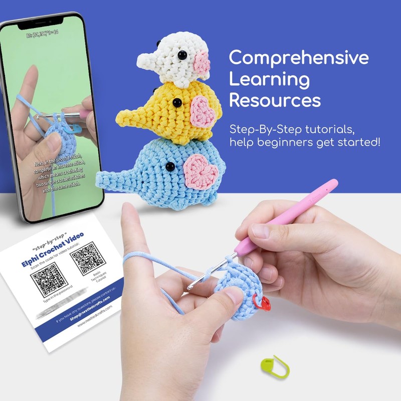 Crochet Kit for Beginners, Crochet Starter Kits for Kids and Adults Amigurumi Craft Knitting Crochet Animals Kits with Step-by-Step Video Tutorials (Elphi)