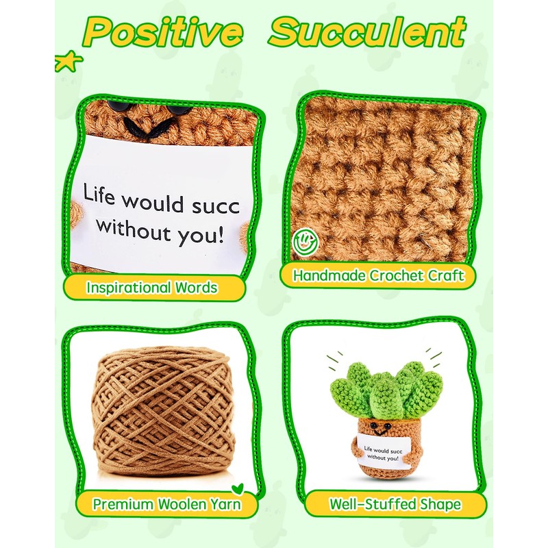 - Mini Funny Succulent Plant Doll: This knitted doll is a cute and quirky companion that will bring smiles and positivity to your day. It comes with a special positive card to cheer up your friends and loved ones in a unique way