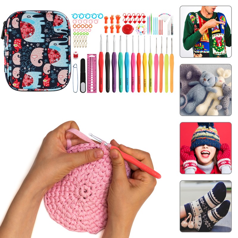 Crochet Set Lengthened Printed TPR Soft Handle HandMade DIY Lace Knitting Tools