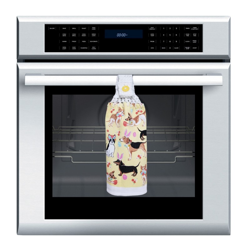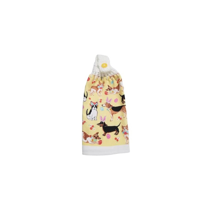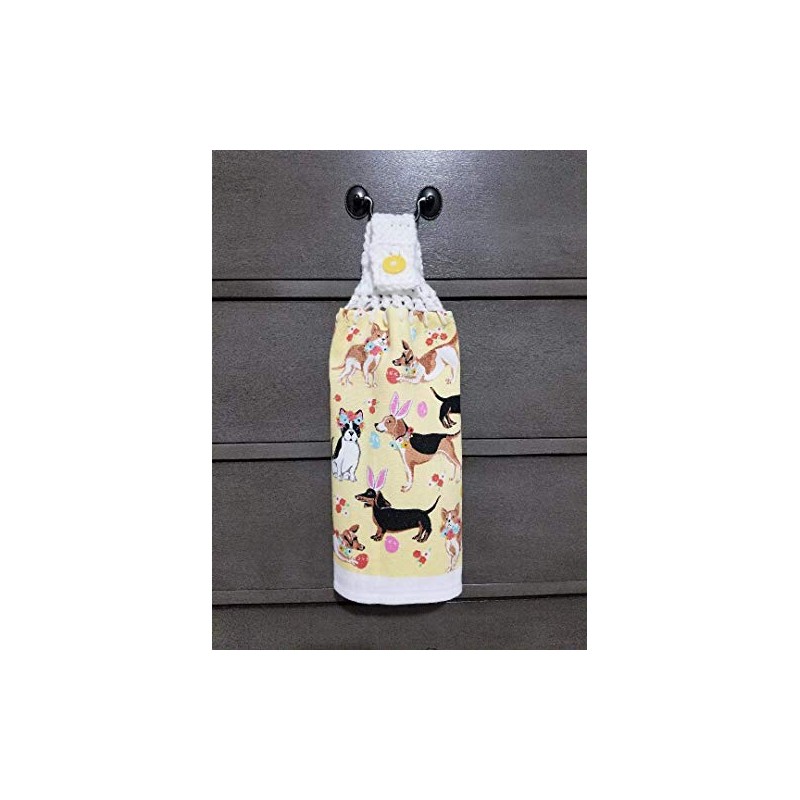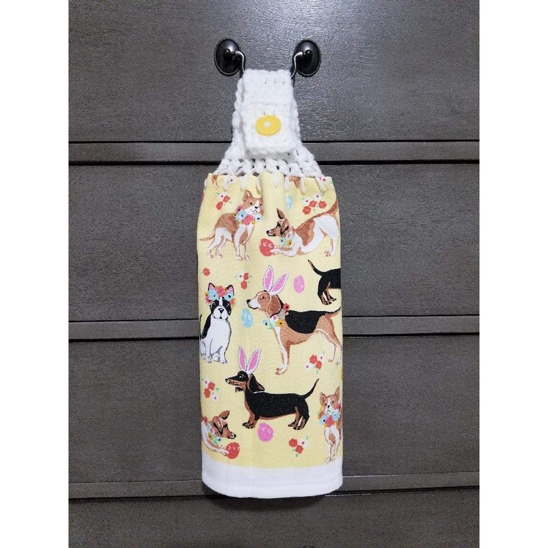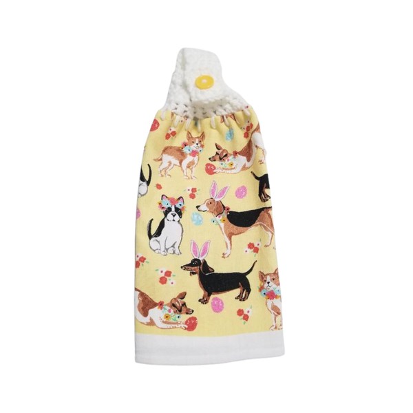 Crochet Top Kitchen Towel Easter Dogs Yellow