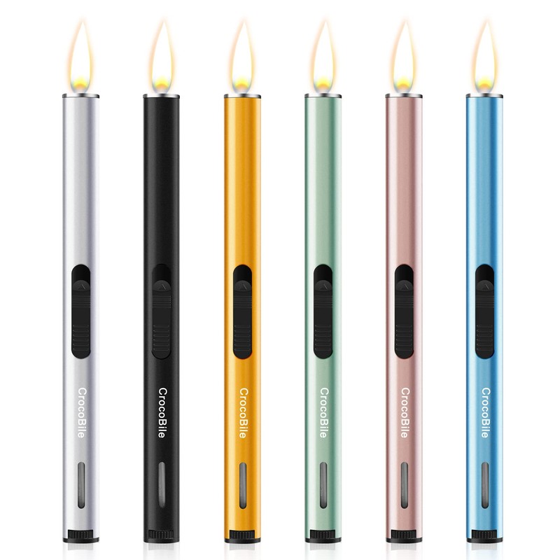 CrocoBile 6 Pack Long Lighters Pack, Refillable Butane Lighter, with Fuel Visible Window, 7.68-inch Adjustable Flame Long Lighter for Candle, Grill, BBQ, Fireworks Lighters (Butane Not Included).
