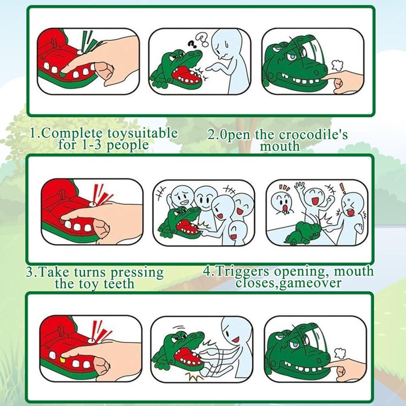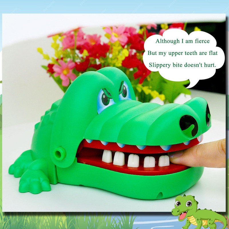 • Crocodile Dentist Game: The crocodile head pressed upwards until a clicking sound. Crocodile's mouth will remain open state. The crocodile will bite you when you press one of the sore tooth. So hope you are the lucky one of the games that avoid pressing the sore tooth. And each time his sore tooth is different.
