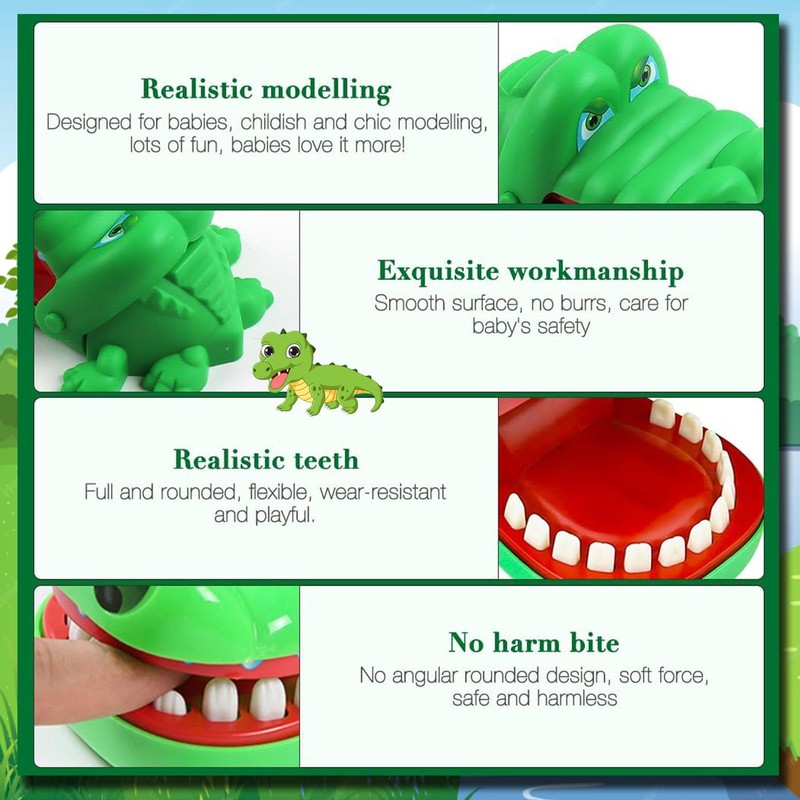 • Thrilling Excitement: The mouth snaps down when they press on the "aching tooth" and it may startle the toddler and cause giggles and happy squealing. It's bound to have you laughing for hours as you try and beat the crocodile.