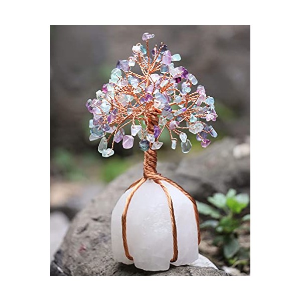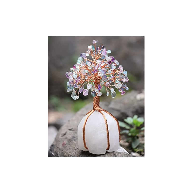 - ✨ FLUORITE GEMSTONE TREE: This Feng Shui Fluorite Gemstone Tree with Natural Quartz Stone Base, Total Size for crystal tree is approximately 5.5"- 6.5", Weight range from 350-400 grams, Size for the Natural Stone base is approximately 2-2.5", Copper Wire. The Tree symbolizes stability, growth, as well as a long life blessed with abundance, It will help you to attract all good things.