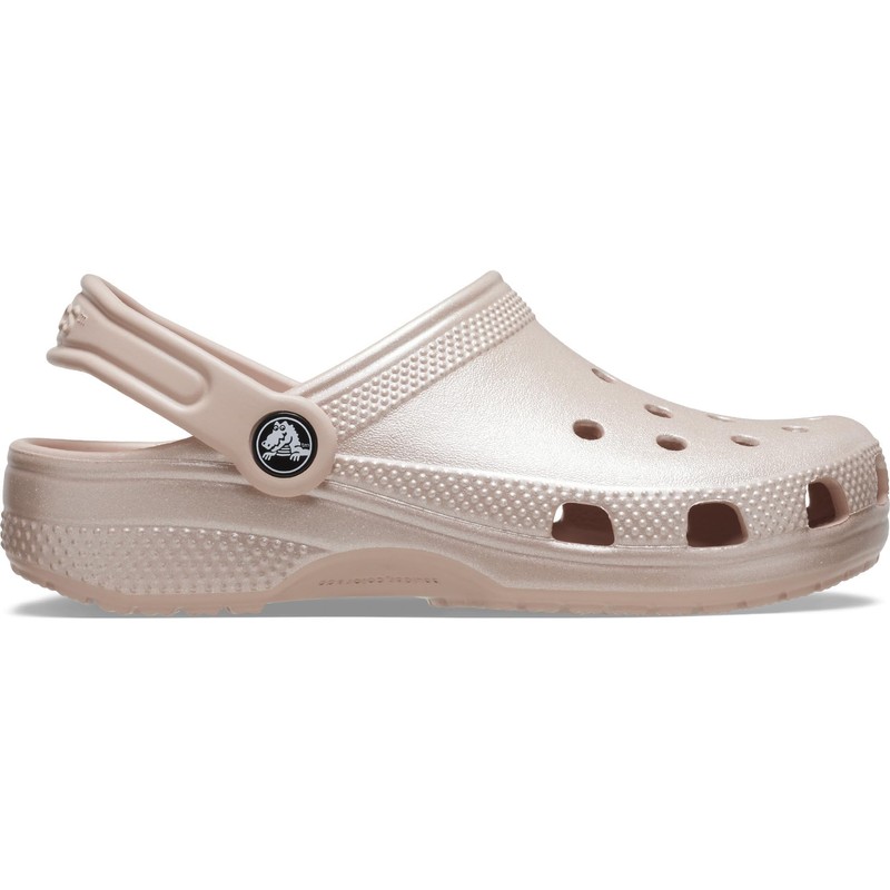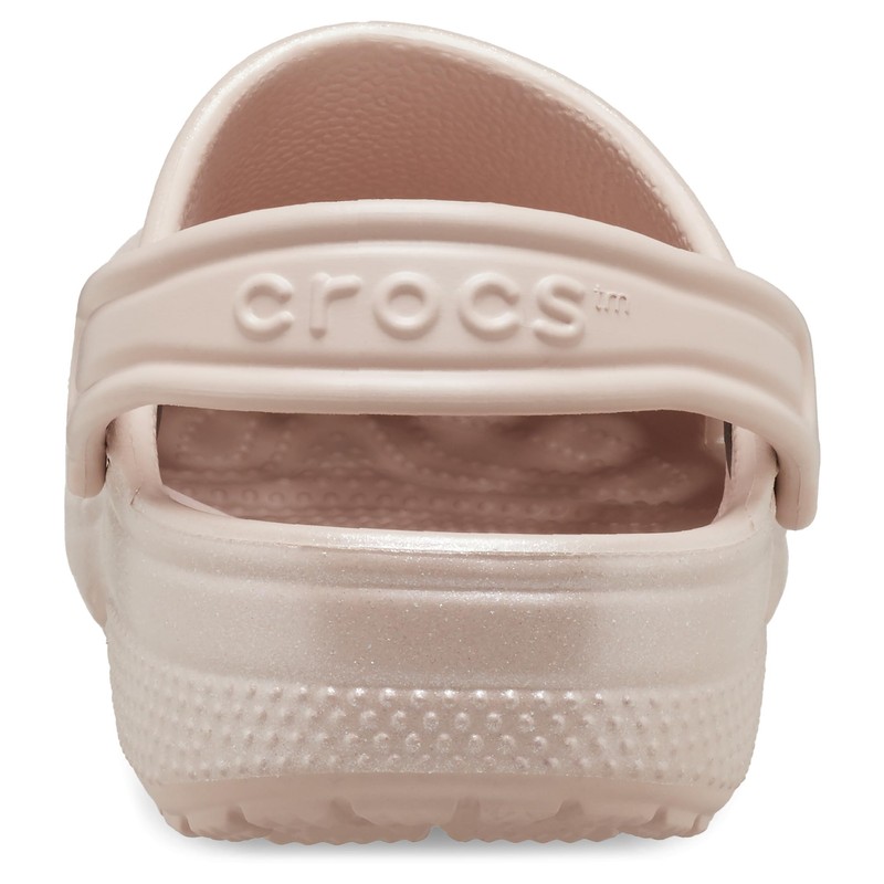 The Croc Kids Classic Glitter Clog looks chic and features an allover glitter detail. It offers comfort and the perfect look for your little one to have fun at parties. Synthetic upper, lining, and insole. Slip-on style with pivoting heel strap. Iconic Crocs Comfort technology offers 360-degree comfort and breathable performance. Jibbitz charms offer scope for personalized styling. Perforated upper. Round toe. Flat silhouette. Croslite foam outsole offers enhanced traction and support.