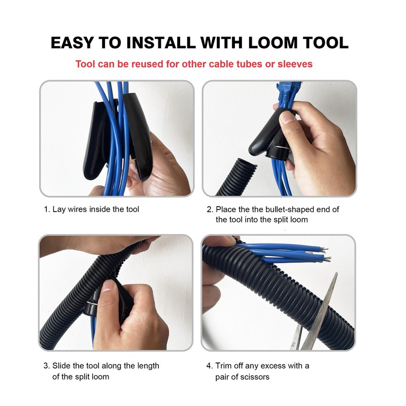 - Comes with a wire loom insertion tool, makes feeding wires through the split loom so much easier and quicker