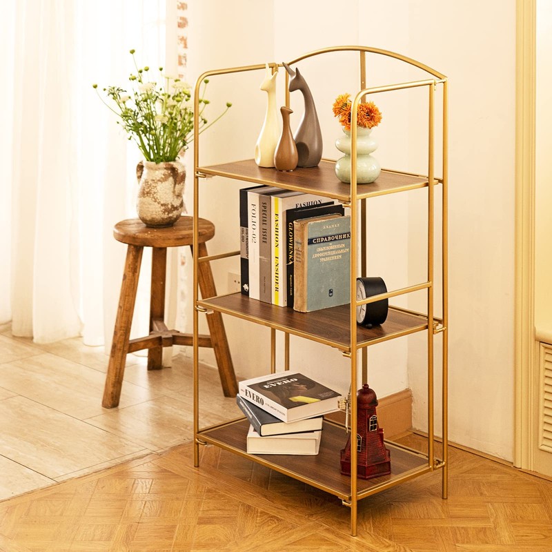 Crofy Crofy No Assembly Folding Bookshelf for Living Room, 3 Tier Gold Collapsible Book Shelf for Home Office, Portable Bookcase Storage Organizer