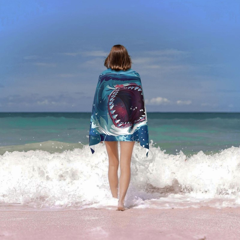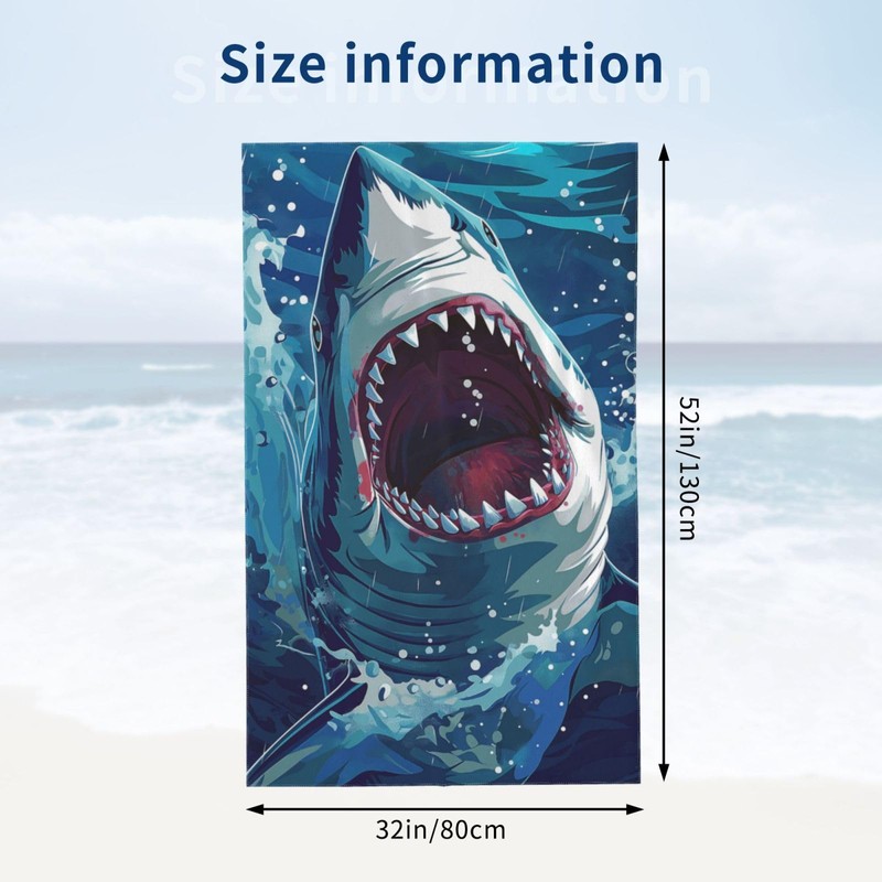 cromcu Shark Beach Towel for Boys Men Adults Great White Shark Bath Towel Print 32" x 52" Pool Towel Super Soft Microfiber Shark Towel for Shark Lovers Beach Towels