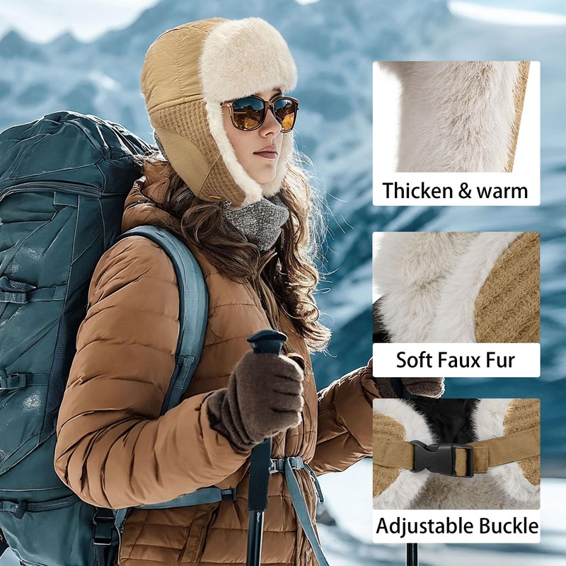 - About Our this Trapper Hat Design: Winter can be tough.Fortunately, you’re prepared. The Trooper hats are windproof, snowproof, waterproof, and thermal design. The outer layer is made of knitted and nylon fabrics, and the nylon is partially waterproof, which can block a small part of snow and light rain. Thicken fluffy faux fur on the lining, keeping you warm while effectively blocking the cold outside air. Never Worry About the Cold Weather.