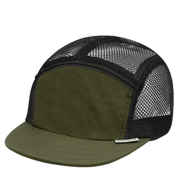 - New Fashion 5 Panel Hats: Low profile cadet caps for men women. Short flat brim design, note that the brim is not a hard cardboard design, is soft, but it is not recommended to fold it at will. The double-layer forehead design and zipper pocket are very distinctive. The other panels are made of breathable mesh design, well stitching and soft mesh smooth providing excellent comfort.