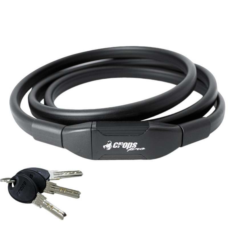 CROPS K4-10D180, Bike Lock Cable 6ft Black, Anti-Theft Cable Lock with 3 Keys and 10mm Thickness Double Wire Construction, Bicycle Lock Cable