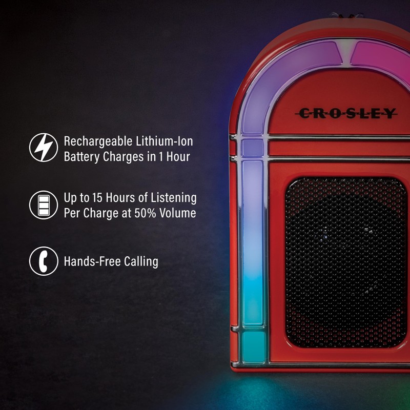 Crosley CR3046A-RE Mini Jukebox Portable Bluetooth Speaker with LED Lights and Microphone, Red