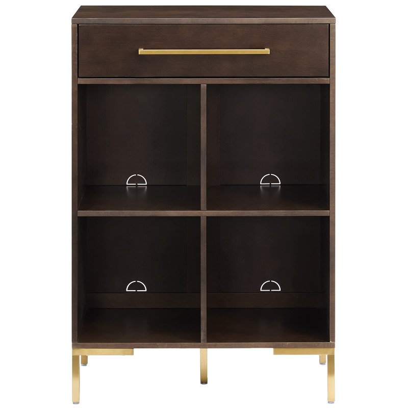 - Modern design with a dark brown finish that pairs well with mid-century modern and glam décor