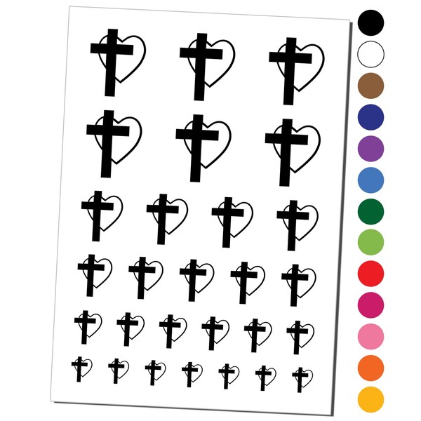 Cross and Heart Love Christian Temporary Tattoo Water Resistant Fake Body Art Set Collection - Red (One Sheet)