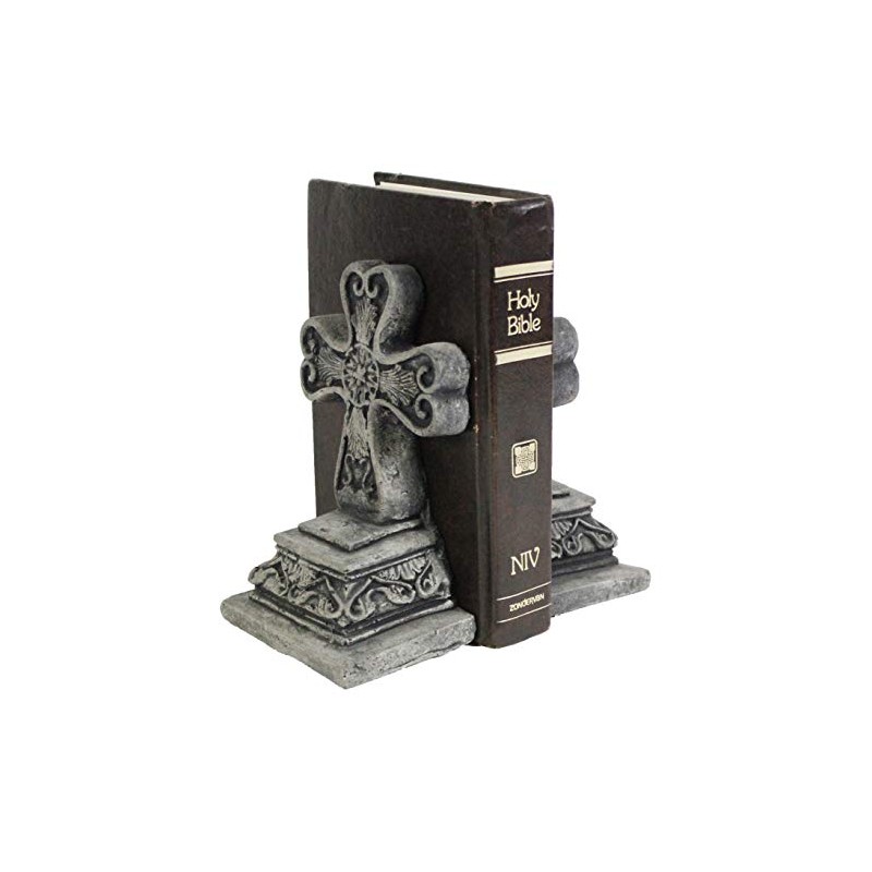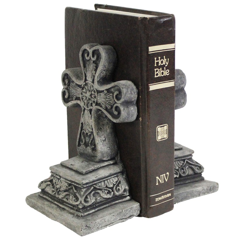 • Spruce up your Home, Office or Library with this Ornamental Cross Concrete Bookends Pair