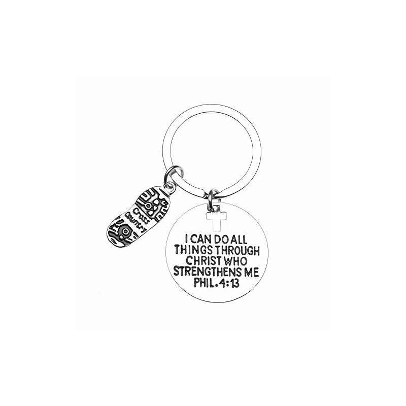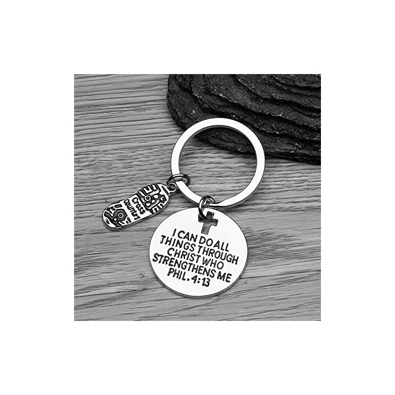 Cross Country Runner Keychain, Christian Faith Charm, I Can Do All Things Through Christ Who Strengthens Me Phil. 4:13 Scripture Jewelry, Gift for Runners, Cross Country & Track and Field