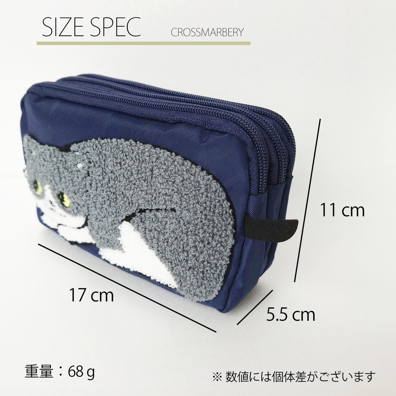 Cross Marberry ST06 Women's Pouch, Cute, Stylish, Large, Cat, Divider, Cat Storage, Small Item, Large Capacity, Fluffy, Cats, Present, 3 Layers, Round Zipper, Charm, Horizontal Type, Gusset, Smartphone, Earphones, Cosmetics, Portable, Adult