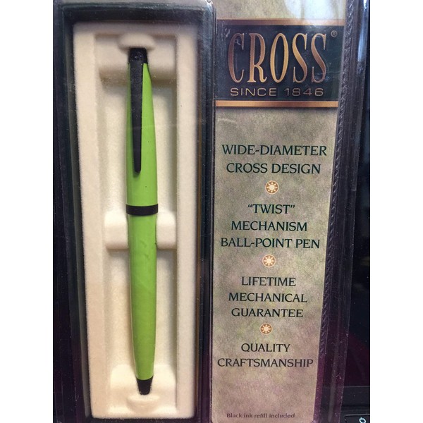 Cross penMid-size girth for writing comfort Distinguished styling Twist mechanism Refillable Lime Green on black barrel Pen contains black ink.