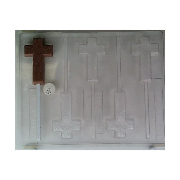 Cross with Wooden Effect Lollipop Candy Mold R011