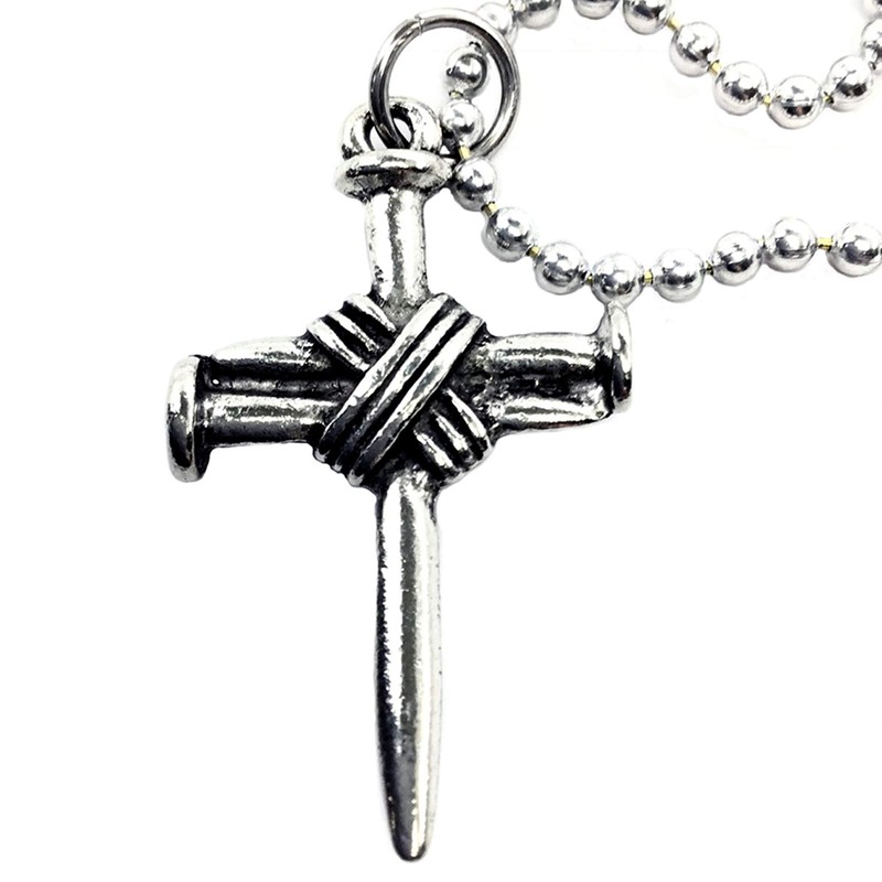 Cross Wrapped Nail Pendant Necklace Antique Silver on Ball Chain