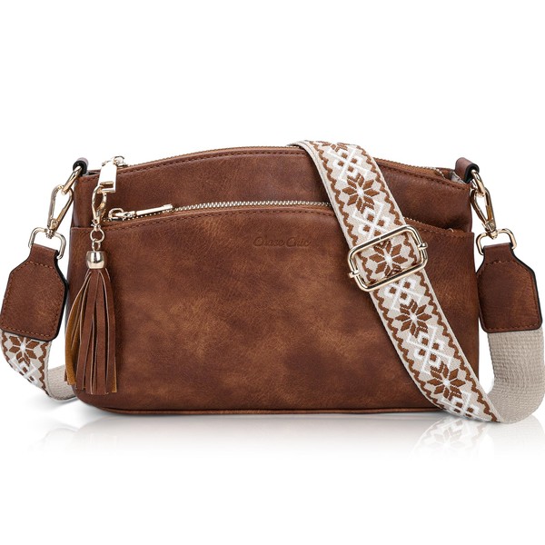 Crossbody Purse for Women,Chase Chic Trendy Vegan Leather Cross Body Bag Lady Small Handbag with Guitar Strap,Brown