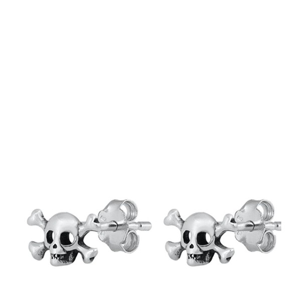 Crossbones Skull Biker Stud Earrings .925 Sterling Silver