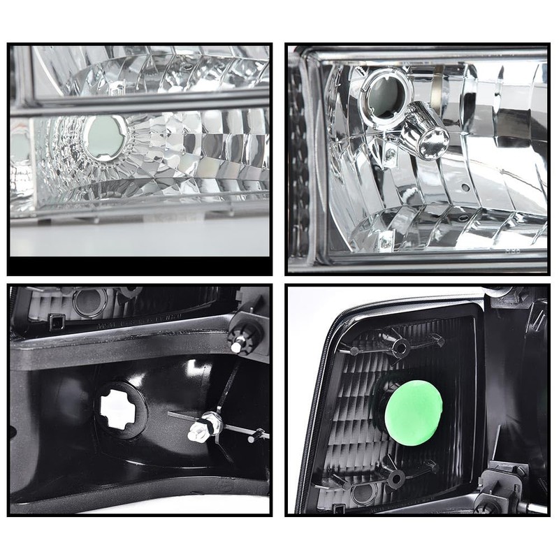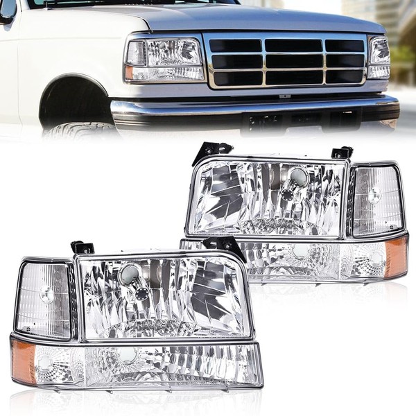 CROSSDESIGN Headlights Compatible With Ford F150 F250 F350 Bronco 1992-1996 Super Duty(Incl.97 9th Old Body Style) Headlamps Replacement w/Corner Signal (Clear lens Chrome Housing Amber Reflector)