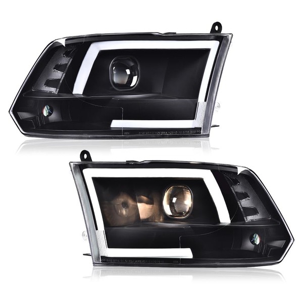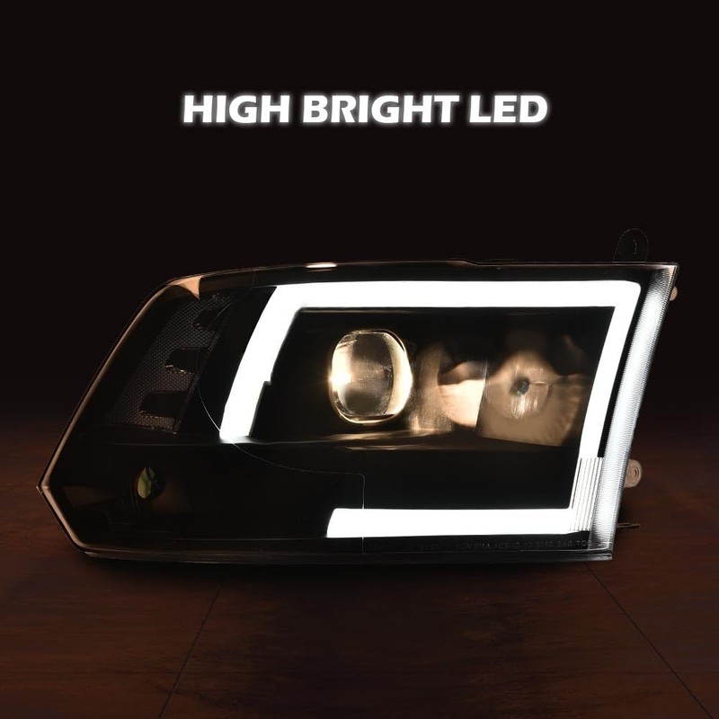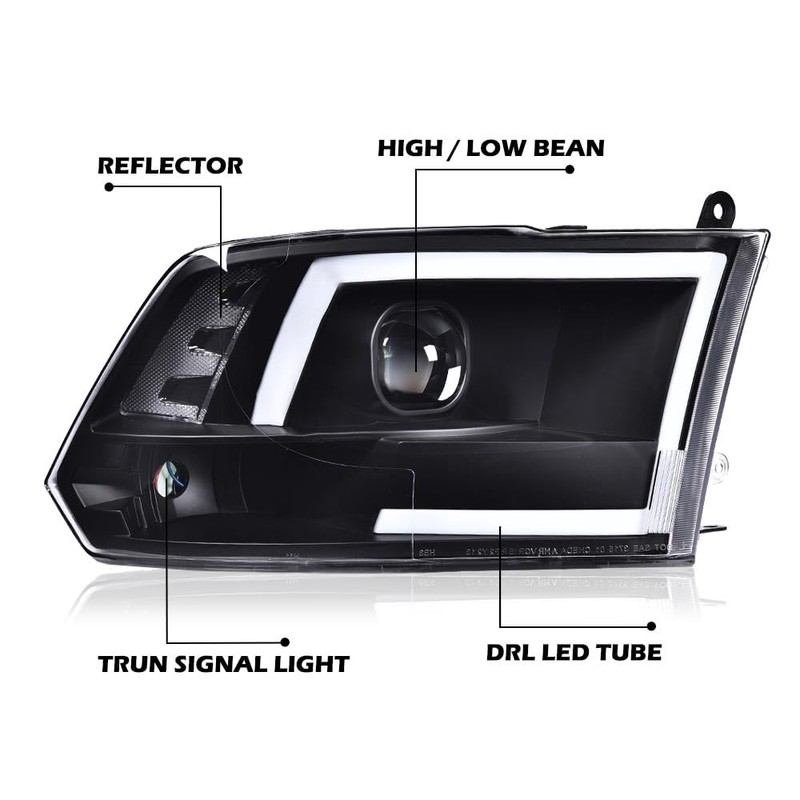 CROSSDESIGN LED DRL headlights Compatible with Dodge Ram 1500 2500 3500 2009 2010 2011 2012 bumper Headlamp Clear lens Black Housing Clear Reflector(Not Fit Dual Beam,Not Fit One Hole)