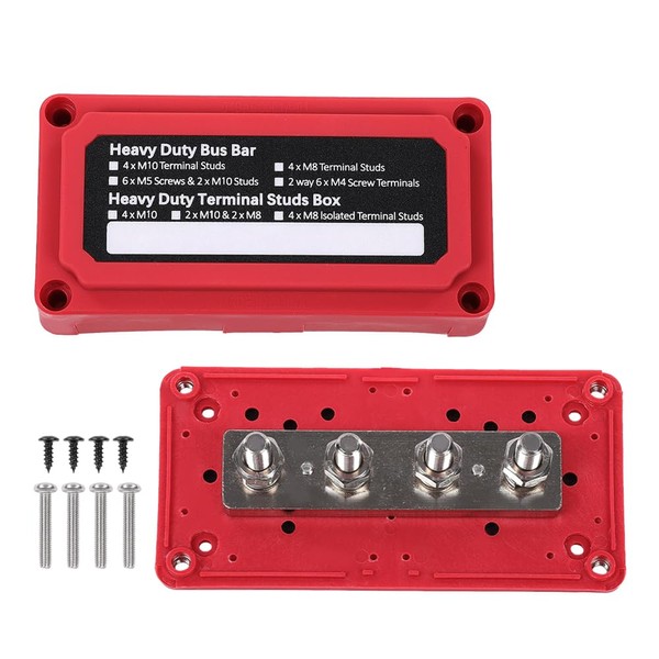 CROSSDESIGN Red Heavy Duty 4 Way Bus Bar/Power Nylon/Fiberglass Distribution Box I Type Screw 300A 48V DC
