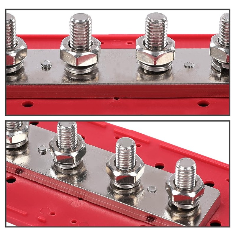 Nylon/Fiberglass Heavy Duty 4 Way Bus Bar/Power Distribution Box I Type Screw 300A 48V DC(Red )