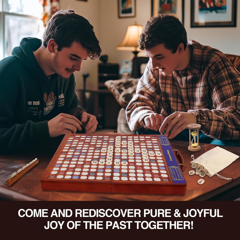 - Thoughtful Accessories Included: Comes with 4 wood tile holders, allowing players to neatly place their letters in their hands; 1 storage bag for all letter blocks; 1 instruction manual provides rules and game techniques to ensure that even beginners can quickly get started with the game; A 5-minute timed hourglass, scorebook, and pencil to record each player's score, without the need for electronic devices, providing an immersive and pure retro gaming experience.