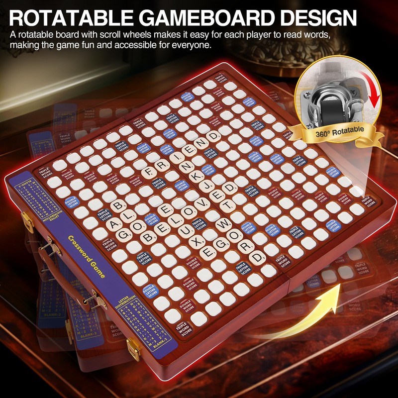- Play to Learn & Compete: This crossword board game luxury edition is a blast for 2 to 4 players. Start by drawing letter tiles, each with its own score value. The game board's got special squares that can double or triple your word scores! You can go head-to-head in a fierce duel or team up for a cooperative showdown. Strategize, flex your vocabulary muscles, and race to rack up points. It's addictive fun that'll keep you hooked from the first tile to the final score tally!