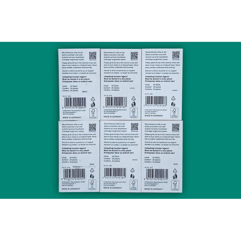 - Crottendorfer original quality: a pleasure of quality and dedication with the Crottendorfer incense cones in a set of 6, each with 24 pieces per pack. Incense cones in size M (H: 27 mm, D: 12 mm).