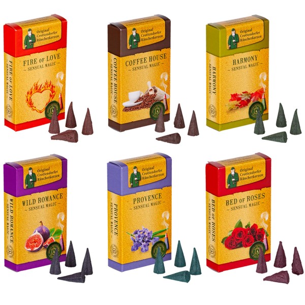 - VARIETY SCENT CHOICE: Our incense set offers six tempting fragrances - Harmony, Coffee House, Provence, Wild Romance, Fire of Love & Bed of Roses. There is an aroma ideal for any occasion, whether meditation, yoga or spiritual experiences.