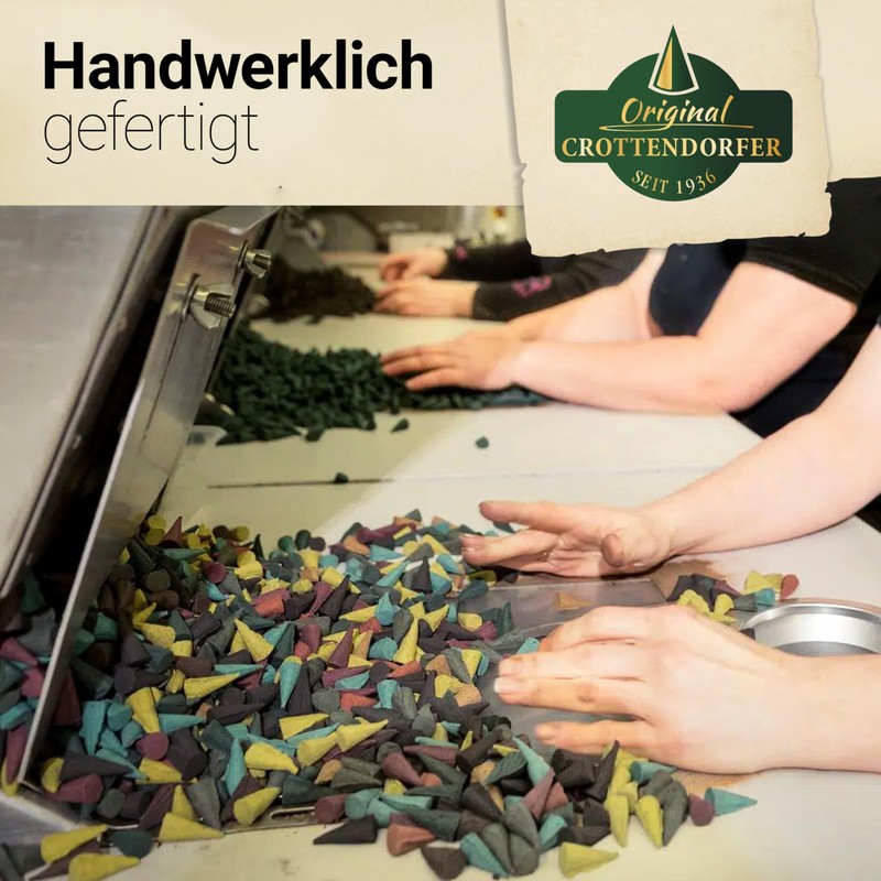 - High-quality materials: the original Crottendorfer incense cones are made from natural ingredients such as sandalwood, jasmine and lavender. The wellness fragrances, just like the traditional incense cones, are made with traditional and detailed handwork.