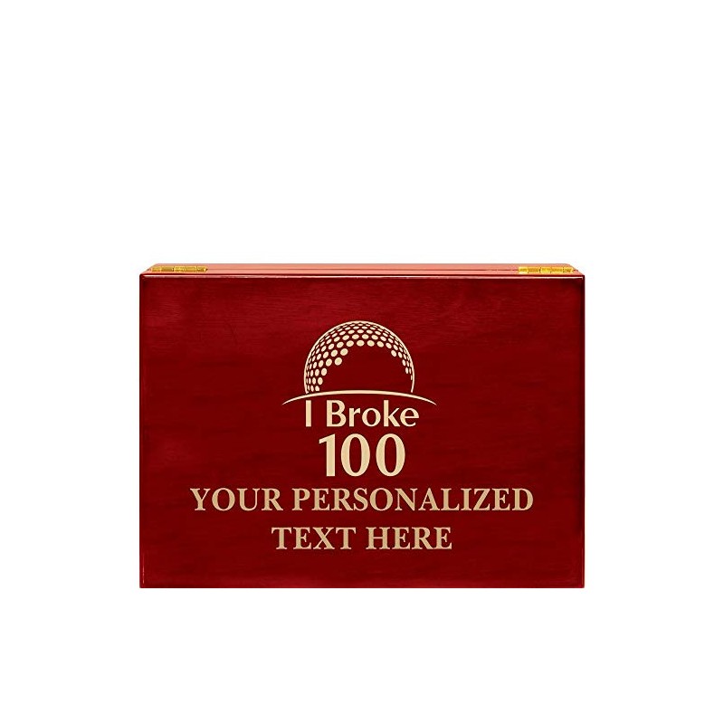 Crown Awards Golf I Broke 100 Rosewood Humidor Gift, Customize with Your Own Text Engraving