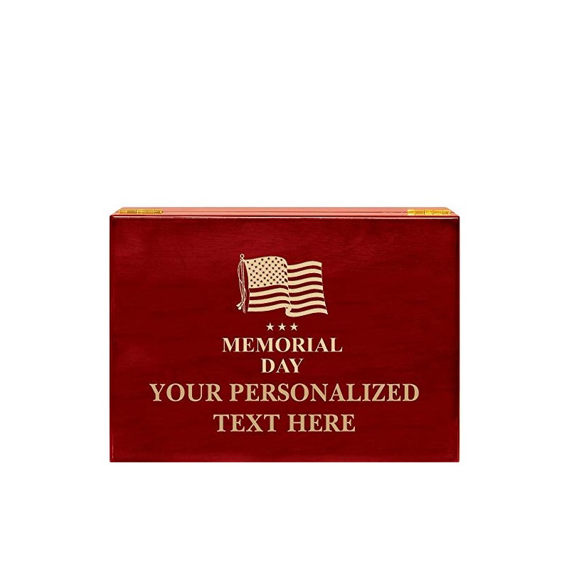 Crown Awards Memorial Day Rosewood Humidor Gift, Customize with Your Own Text Engraving