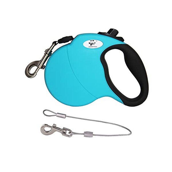 - BLUE Chew Proof Dog Leash: 13ft retractable dog leash for SMALL breed dogs up to 22 lbs,with anti-chewing Detachable steel wire can help you extend the life of the leash, CROWN PAWS wire ropes Strong and Durable.