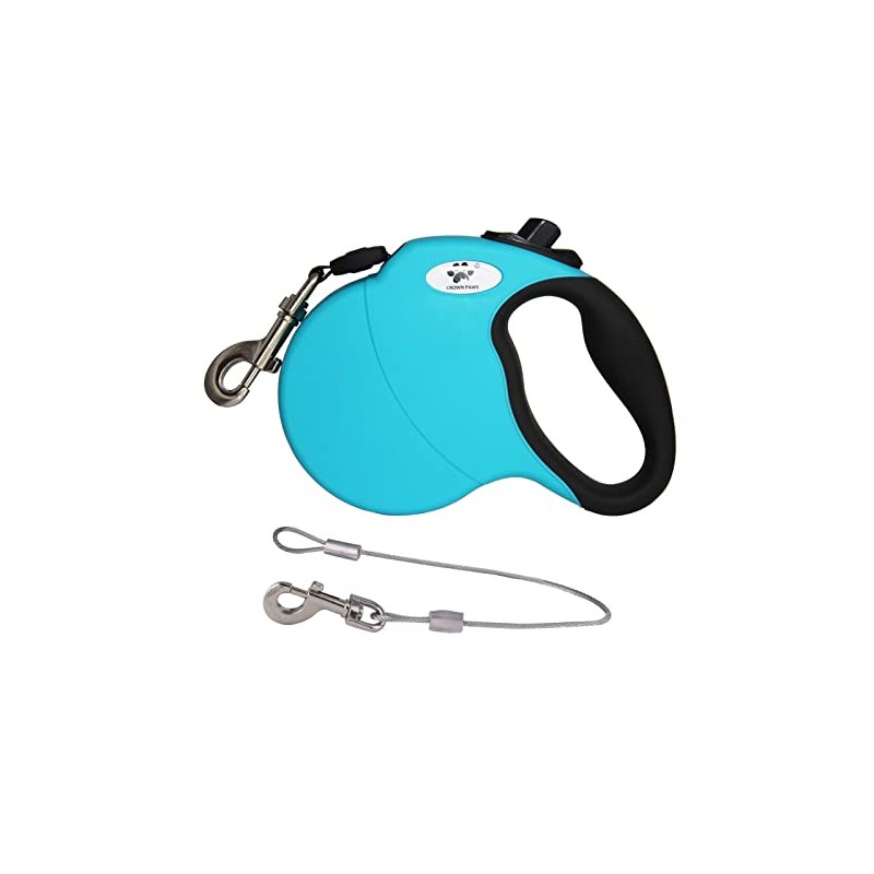CROWN PAWS 13ft Retractable Dog Leash for Small Breed Dogs up to 22 lbs with a Detachable Chew Proof Extender Wire Ropes (Blue S)