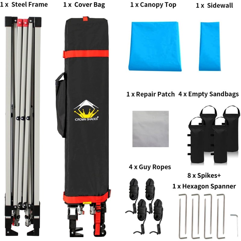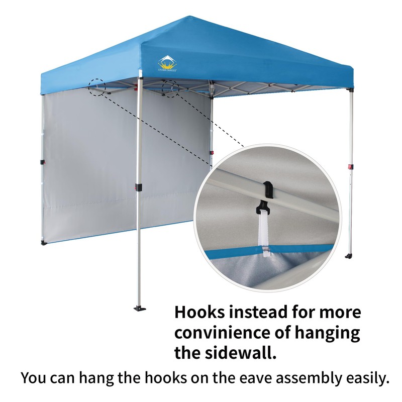 CROWN SHADES CROWN SHADES 8x8 Pop Up Canopy with 1 Side Wall - Beach Tent with One Push Setup - Outdoor Sun Shade for Events, Parties, Camping - Gazebo with STO-N-Go Cover Bag (Sky Blue)
