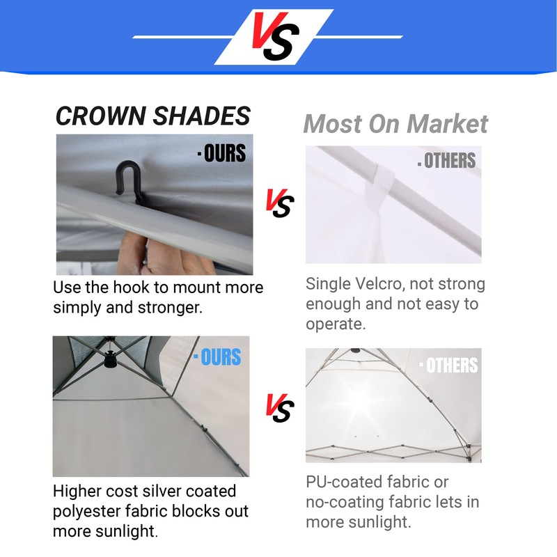- SILVER COATING:150D Polyester with silver coating and waterproof layer, able to provide UPF50+ UV protection and waterproof. It is more gray than pure white due to silver coating