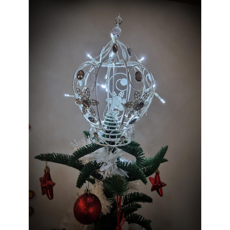 - Versatile Display: While intended as a tree topper, this stunning ornament can also be used as a free-standing decoration, allowing you to showcase its beauty in various settings. This tree topper also looks great when you either wrap your tree lights inside the crown or add your own.
