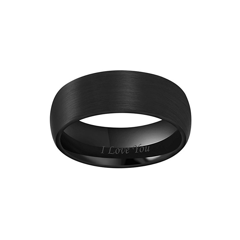CROWNAL 4mm 6mm 8mm Black Ceramic Wedding Band Ring Men Women Couple Dome Brushed Finish Engraved I Love You Comfort Fit Size 4 To 16(8mm,7)