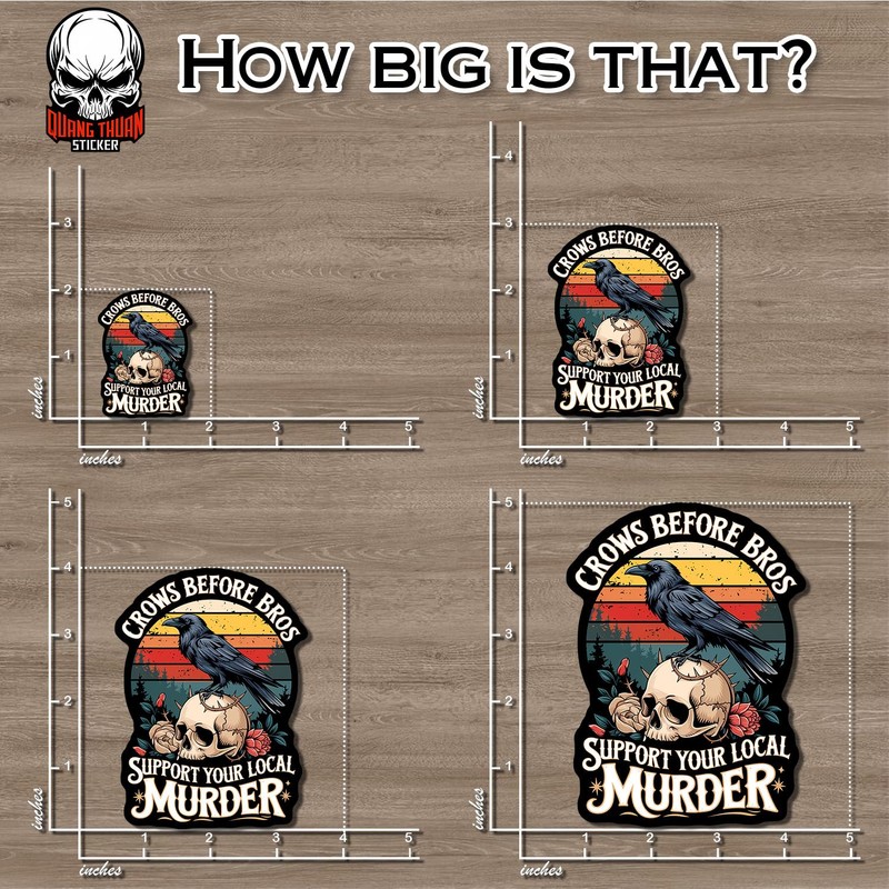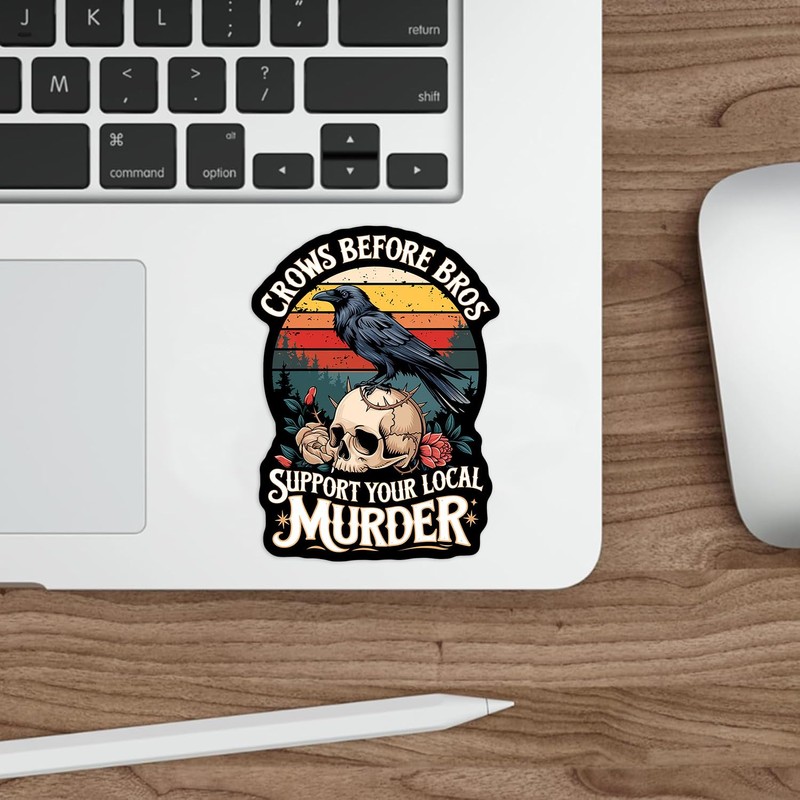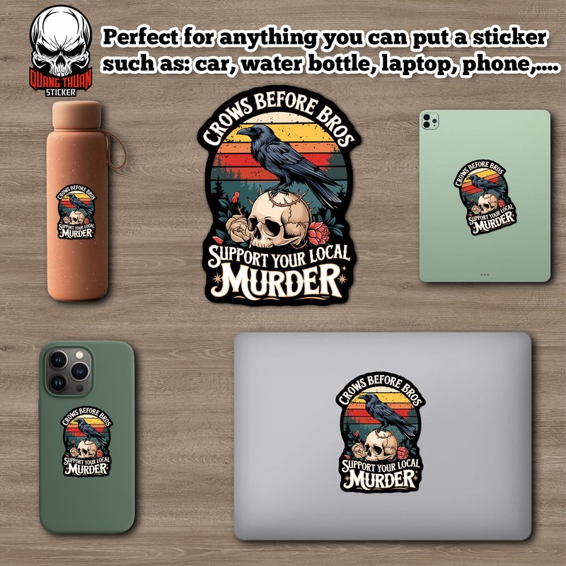 Crows Before Bros Support Your Local Murder Sticker Retro Crow Skull Waterproof Vinyl Bumper Sticker for Water Bottle Hard Hat Helmet Car Laptop